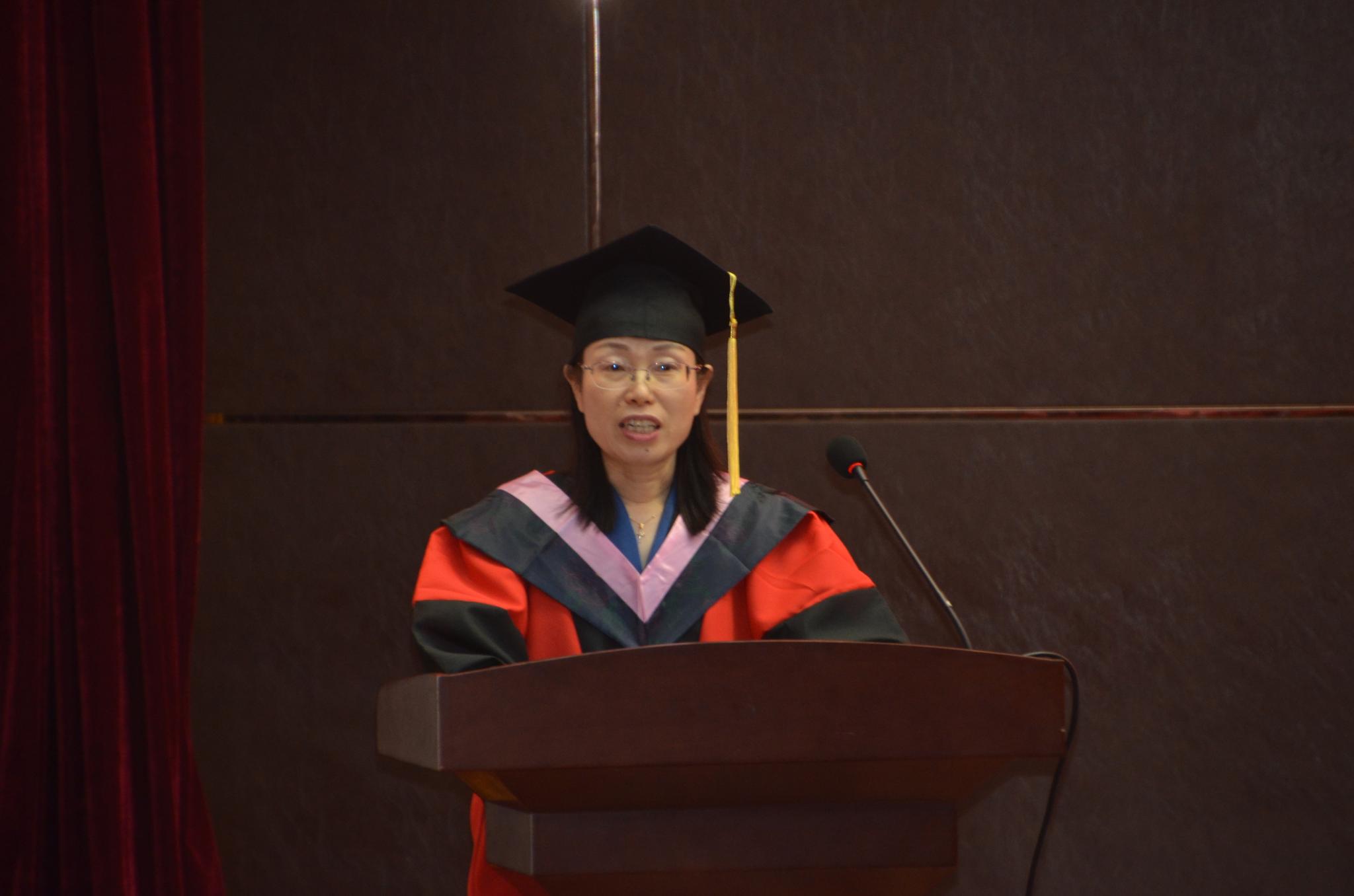 俄语系主任孙嵩霞代表外国语学院全体教师对2022届全体毕业生表达了自己的祝愿。她希望同学们面对百年未有之大变局的世界局势,练就过硬本领,实现个人价值;要做好自己,做一个有原则、积极进取的人;要勇于面对现实,学会跟自己和解;要心怀感恩,以自己耕耘的丰硕成果回馈母校与社会。