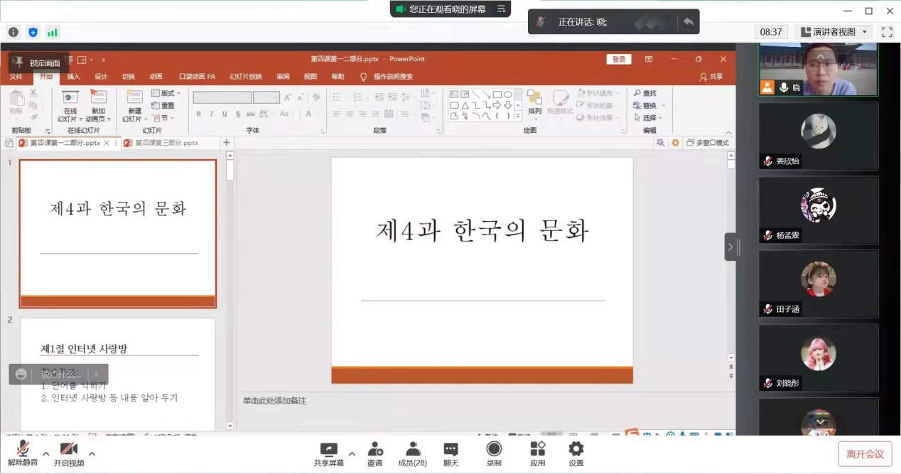 朝鲜语韩晓老师线上授课