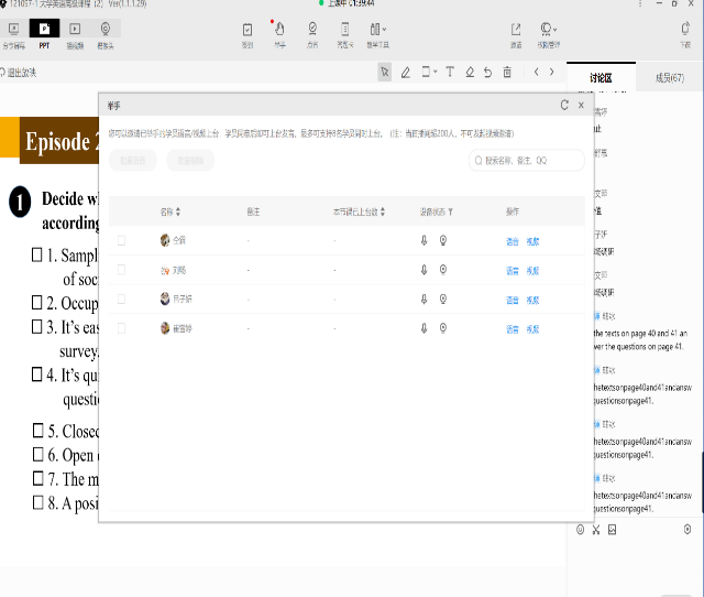 多位学生在腾讯课堂申请“连麦”