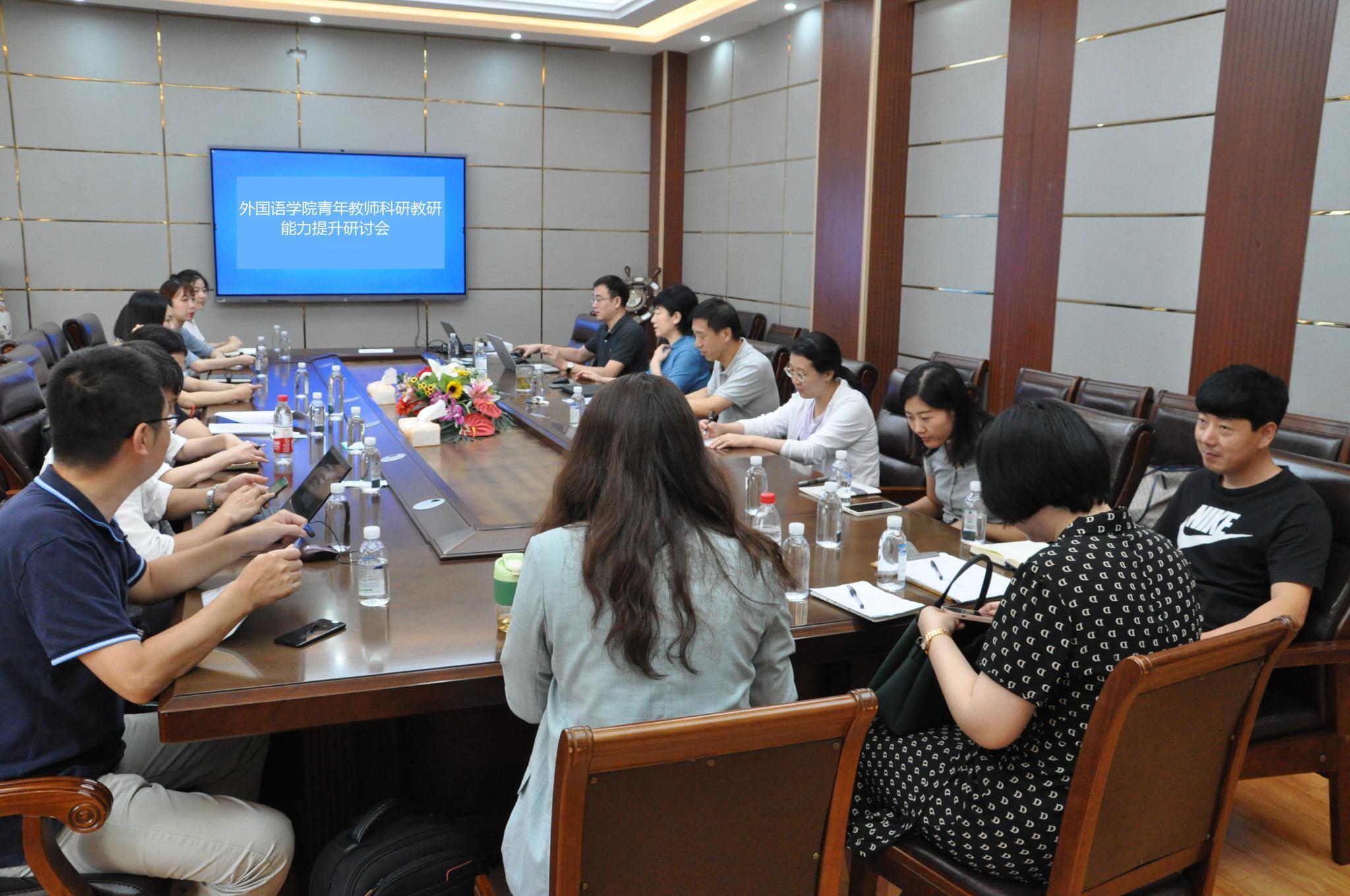 同时,学院积极推动“传帮带”的良好传统,积极发挥优秀教师的师范引领作用,并开展教研一体的系列活动。2021-2022年,学院在学校的引领和指导下,开展了“百优课”系列教学观摩及研讨活动。与“启航课堂”系列活动不同,“百优课”主讲教师皆为教学名师或校级优秀教学奖获得者,他们经验丰富,专业能力及教学技能过硬,且大多经过各类比赛的磨练,青年教师不但可以从她们的课上学到教学实践技能和经验,同时,青年教师还可以从她们身上学到认真钻研理论、积极磨练技能、不断参加教学比赛的精神和耐力。在公开课后的教研活动中,大家通过交流,也意识到教研结合的重要性,以教学促研究,以研究成果反哺教学,才能更好更快地实现自身发展。学院尤其注重对新入职教师教研能力提升的督促和帮扶。2021年9月15日下午,外院举行青年教师科研教研能力提升研讨会,学院部分骨干教师及近五年新入职的博士参加会议。此次研讨会对新入职教师的教研科研能力进行了全方位动员,并为他们指出了具体的努力方向和发展之路。