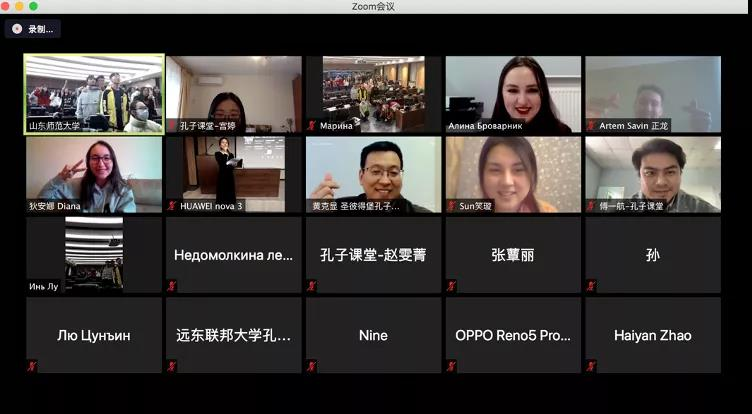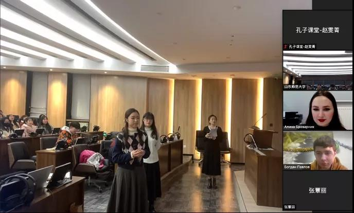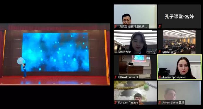 2021年12月25日,山东师范大学与俄罗斯圣彼得堡孔子学堂联合举办了“2022年中俄青少年新年线上联欢会”。圣彼得堡孔子学堂中方院长黄克显、外方院长张蕈丽、孔子学堂教师宫婷、傅一航、孙笑璇等教师代表,以及山东师范大学外国语学院俄语系主任孙嵩霞、教师代表尹禄等出席了本次活动,中俄双方近百名学生线上或线下参演并观看了此次联欢会。