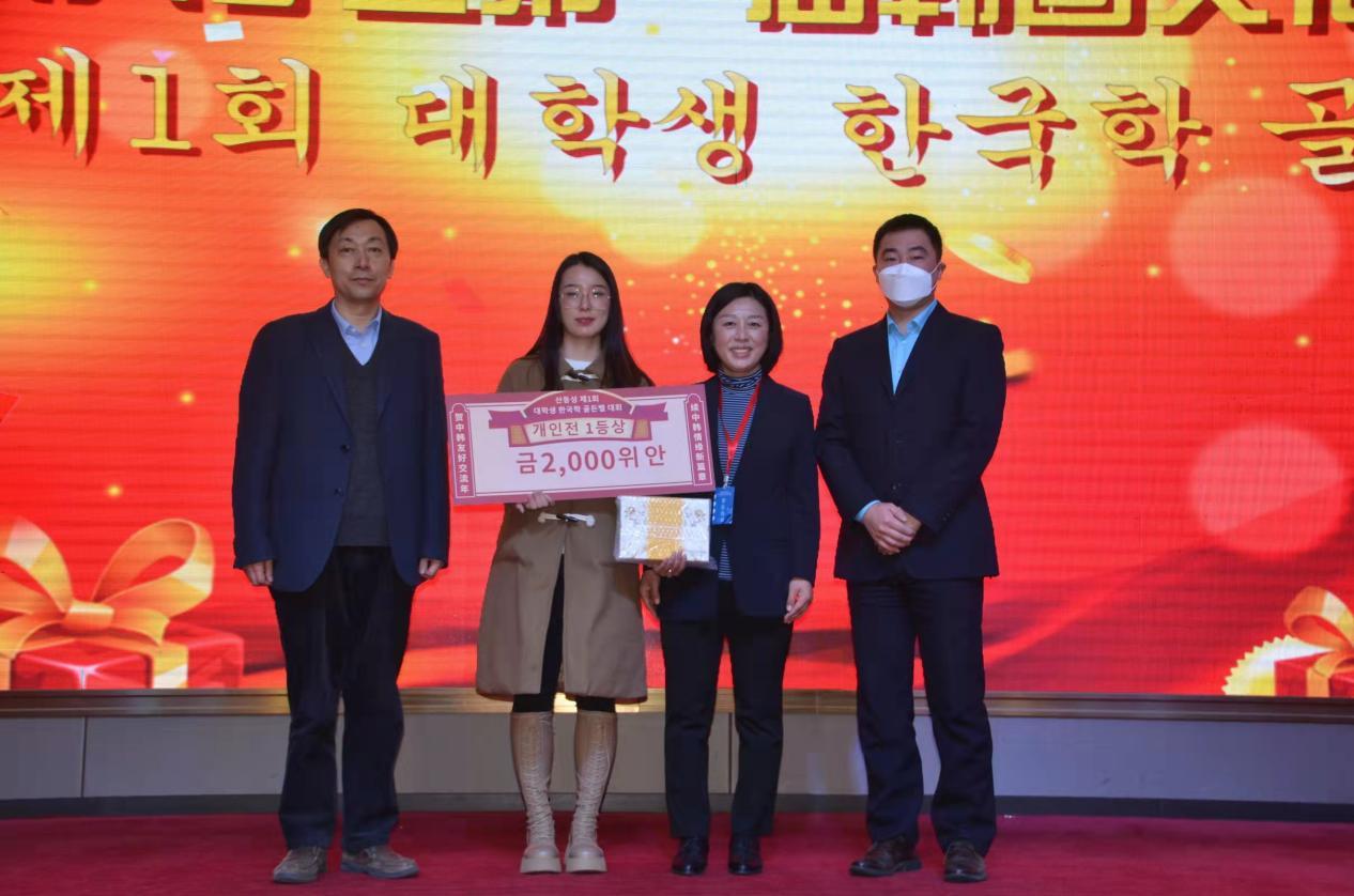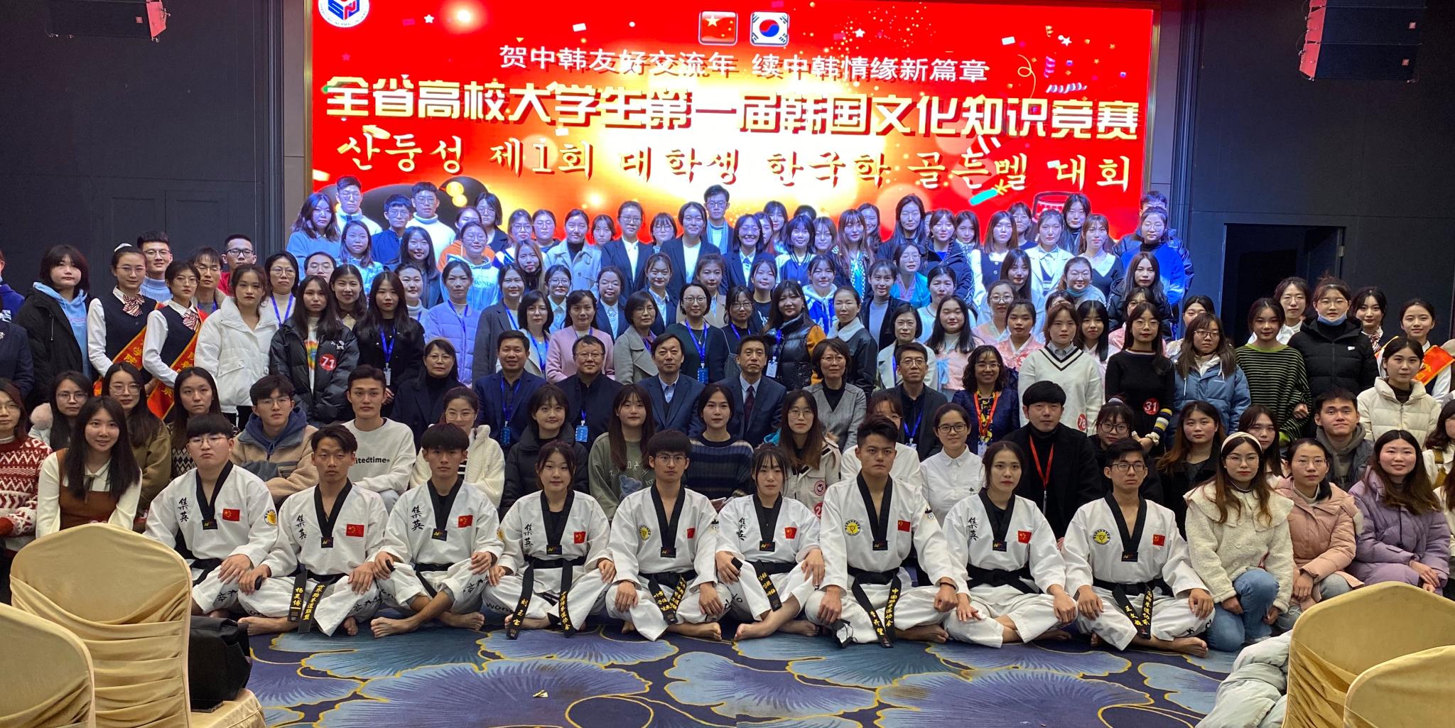 2021-2022年是中韩友好交流年,值此之际,由山东师范大学外国语学院主办,韩国学中央研究院协办的山东省高校大学生第一届韩国文化知识竞赛于11月28日上午在长清区泉盈酒店成功举办。本次大赛的主题为“贺中韩友好交流年续中韩情缘新篇章”。山东师范大学外国语学院党委岳希亮书记,王金娥副院长,东方语系主任钟洁老师、山东大学外国语学院韩语系博士生导师牛林杰教授及其他各高校韩语负责人出席活动。