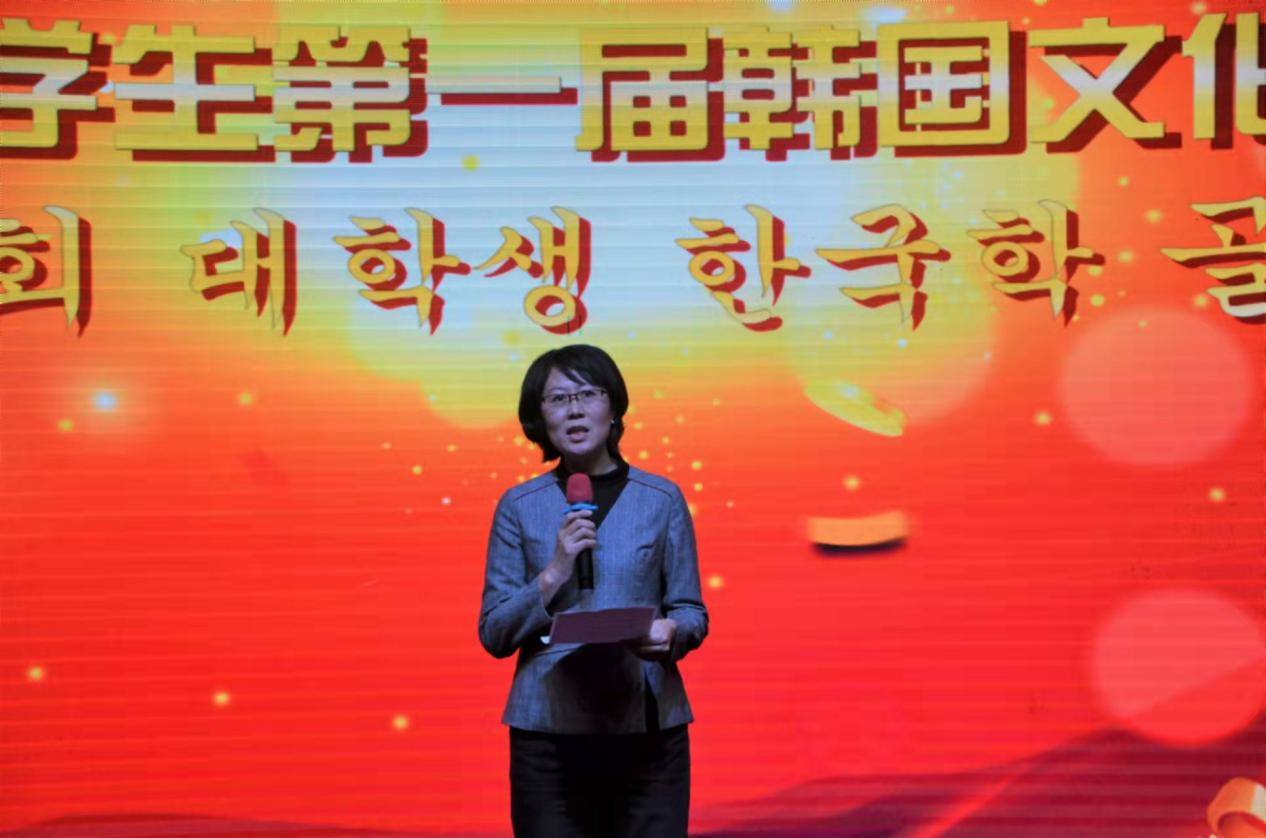 表演结束后,王金娥老师主持大赛开幕。她讲到,本次大赛举办恰逢迎来中韩建交30周年之际,希望通过比赛为全省韩国语专业的学生们提供了一个学习和交流的平台,鼓励学生们做通晓国际规则,知识、能力、品格全面发展的复合型应用型高素质的外语外事人才,同时也借此机会增进山东各高校韩国语专业间的交流与合作。此外,她向此次参赛的二十四所高校,参赛选手及各高校负责老师表示热烈的欢迎和衷心的感谢。并最后预祝各位参赛选手有出色的表现,同时预祝此次比赛一切顺利,取得圆满的成功!