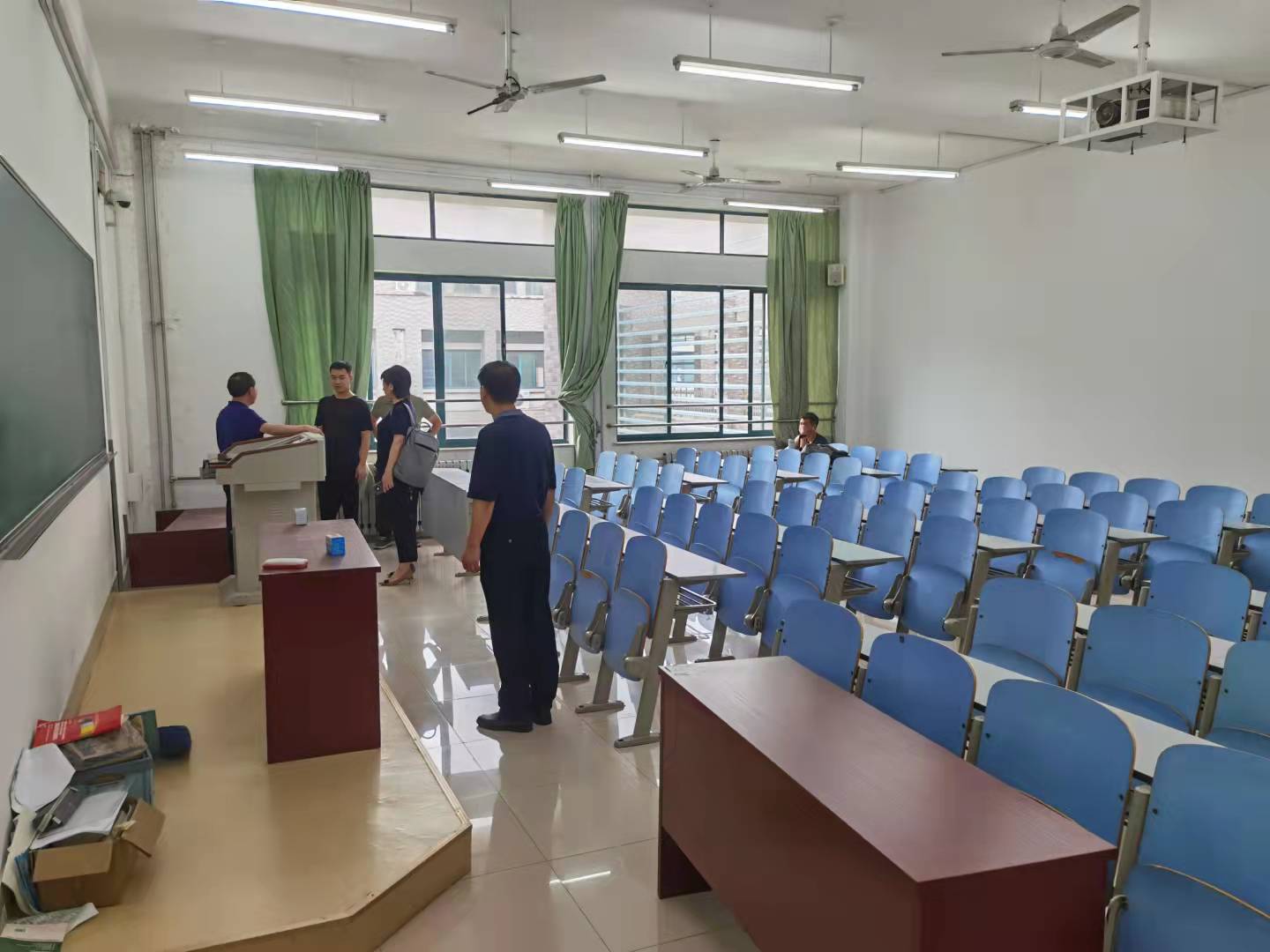 8月30日上午,外国语学院全体领导班子成员带领学院党政办、学工办负责人一行深入长清湖校区文渊楼A区办公室、B区教室、实验室等实地查看学院新学期运行情况,看望慰问师生。并与已返校师生进行交流,了解学习、工作状态及困难,关切他们要尽快调整状态,全身心投入到新学期的学习和工作中来。