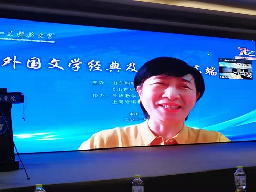 7月9日至11日,由山东科技大学外国语学院、《山东外语教学》编辑部联合主办的“外国文学经典及其改写高端论坛”在青岛举办。山东科技大学党委常委、组织部部长陈涛出席开幕式并致辞,山东师范大学外国语学院院长、《山东外语教学》主编王卓在线上出席开闭幕式并致辞。开闭幕式由山东科技大学外国语学院院长唐建敏主持。