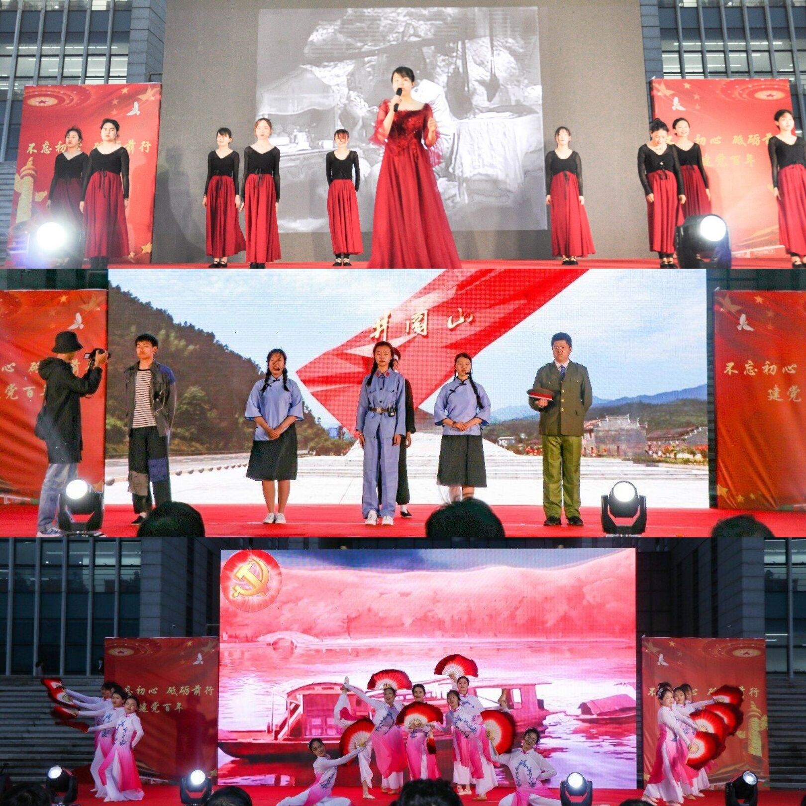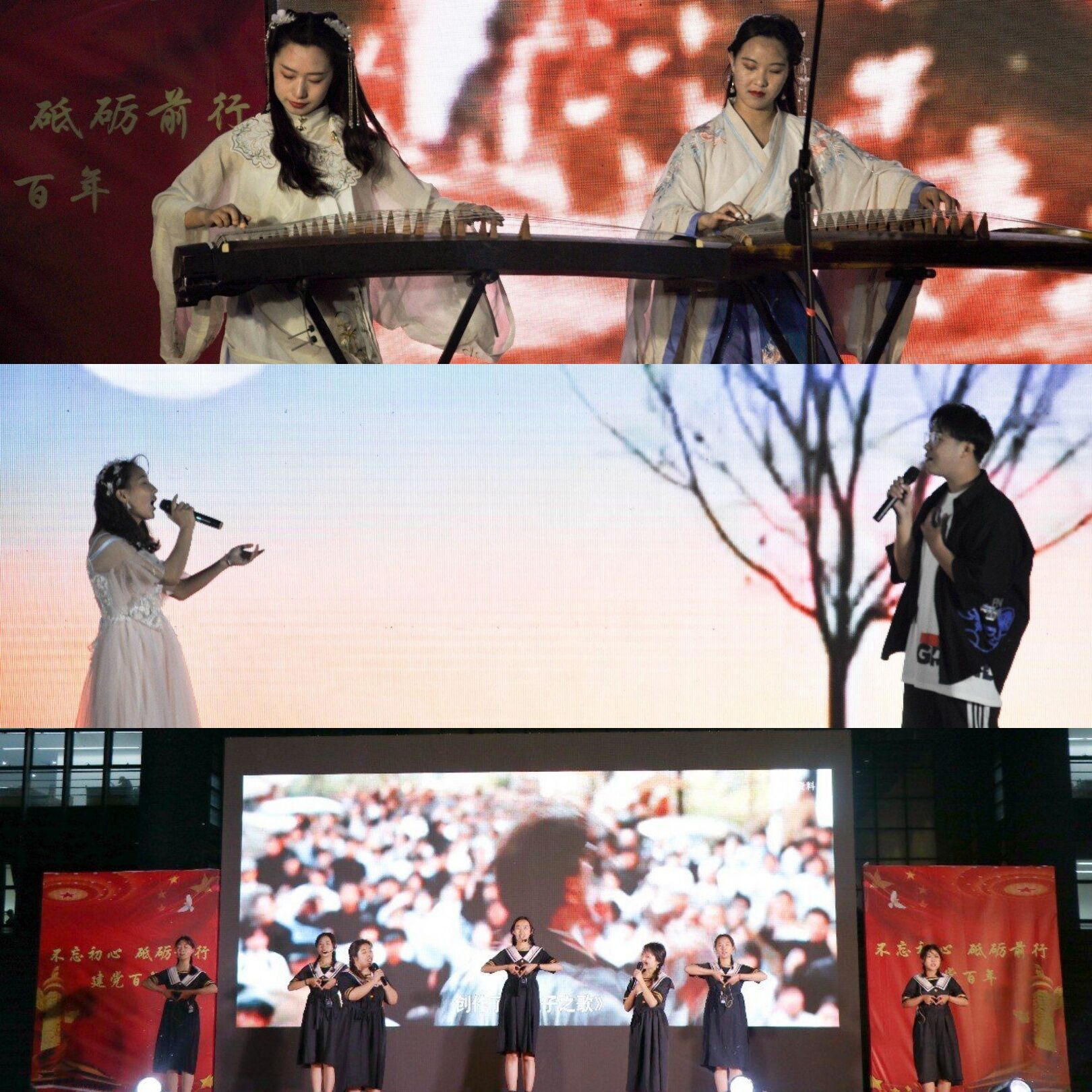 本次晚会分为“涅槃”和“腾飞”两大板块,共计18个节目。第一部分聚焦1921年中国共产党成立到1949年中华人民共和国成立,再现中国逐渐摆脱贫困面貌,成为一颗冉冉升起的新星的光辉历程。舞台剧《可爱的中国》再现了革命战士不屈不挠的精神;歌伴舞《我的祖国》表达对伟大祖国的歌颂与赞美;俄语合唱《喀秋莎+我们衷心祝福您》、古风燃曲《轮回》饱含对过去岁月的拳拳深情与深切敬意。