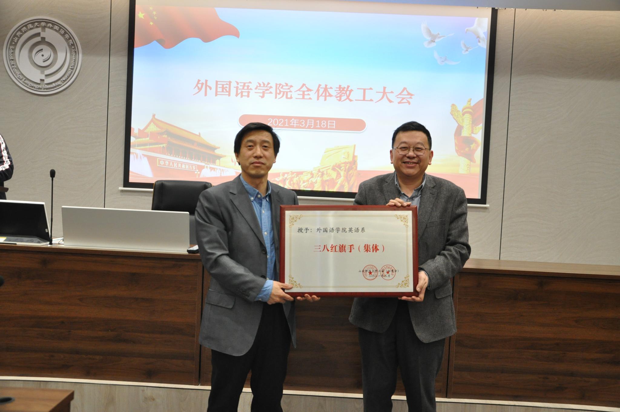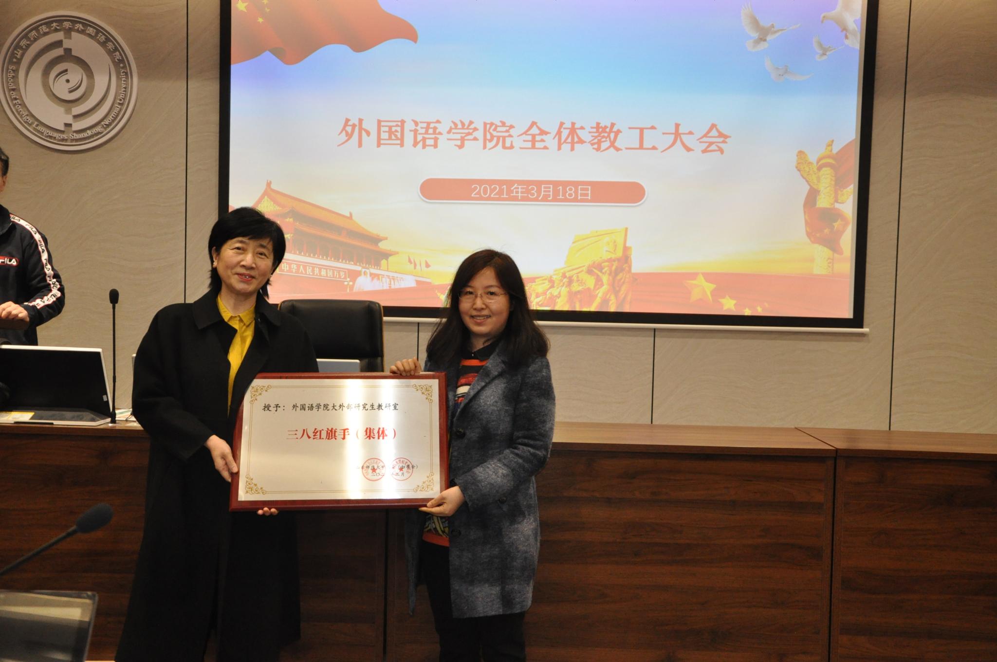 会上,还举行了校工会三八红旗手(集体)、三八红旗手标兵、三八红旗手表彰仪式。学院大外部研究生教研室、英语系以及法语系曹淑娟、俄语系钟洁两位教师分别获得先进集体与先进个人奖项。