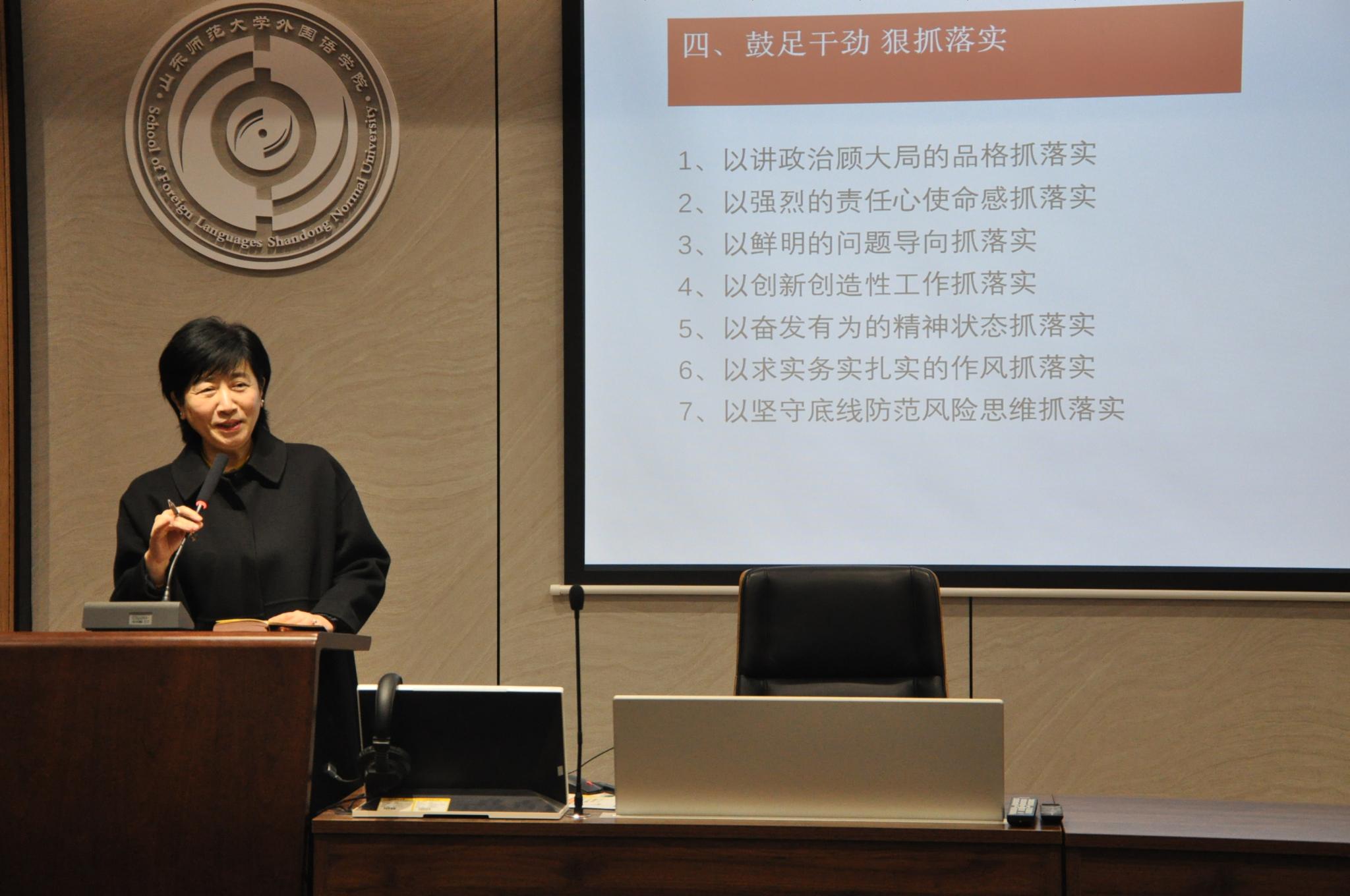 王卓院长随后结合校领导在新学期开学全校干部大会上的讲话与工作安排,对学院新学期的教学安排、学科建设、科研开展等作出具体部署。她期待全院教职工以英语、日语专业入选国家一流学科建设为契机,继续凝心聚力抓好学科优化、教学质量提升,丰富个人科研成果,不断提升毕业班考研率、就业率,为“十四五”规划开好局、起好步。