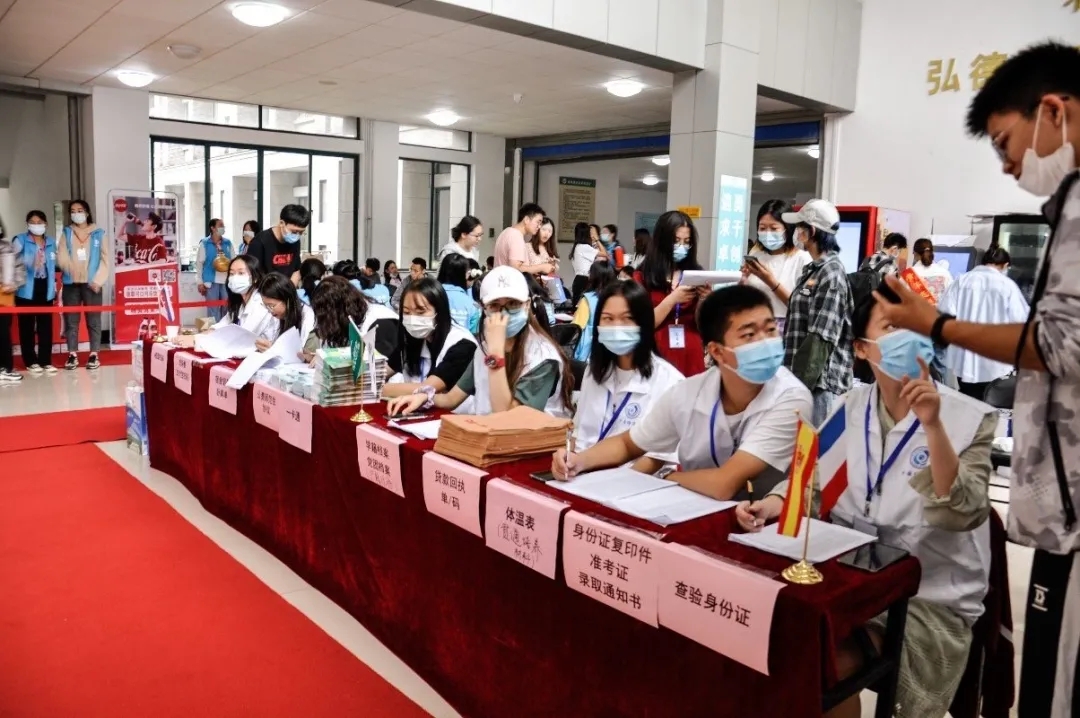 学校和学院各级领导高度重视和支持本次迎新工作。学院提前做好详密且充分的准备工作,周密部署,精心组织,落实责任,以确保迎新工作顺利有序进行。在严格防控疫情的大前提下,学院为每一位新生准备了口罩、免洗手消毒凝胶和酒精湿巾等防疫大礼包,并对新生做好体温检测以及健康码检查,全力将疫情防控工作落到实处,保障校园安全。新生自踏入校门起,便能感受到学院的人文关怀与情感温度:志愿者亲切热情、耐心细致地逐步引导新生高效快捷地办理信息核验、费用缴纳等报到手续,帮助新生运输行李、引导路线并向新生介绍学院情况;院会宣传部精心制作了“签证卡片”、护照主题合影展板及签名墙、手绘及电子迎新海报等文创产品,提前进行了游览校园的直播工作,撰写了新生辅导员的人物专访,增进了新生对学院的了解,为迎新工作营造了良好氛围;院会自律监察部提前组织打扫好新生宿舍卫生,力求为新生提供舒适的生活环境;院会青年发展部拉来了雪碧、可乐等赞助,为新生及家长提供休息区并送来一片清凉;学院小合唱队为新生倾情演唱经典外文歌曲,用美妙的歌声迎接新生的到来,展示了学院风采。