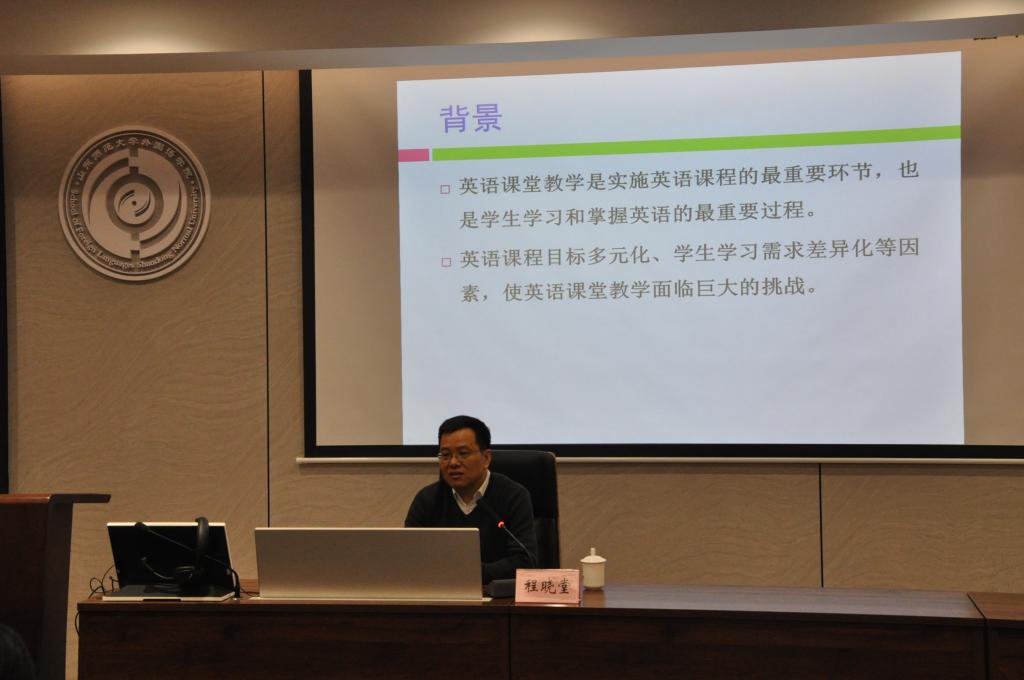 2020年1月3日上午,应山东师范大学外国语学院邀请,北京师范大学外文学院博士生导师程晓堂教授在外国语学院会议室与部分教师进行座谈。外国语学院院长王卓,副院长王金娥,以及学科教学、课程与教学论方向的教师参加了此次座谈。