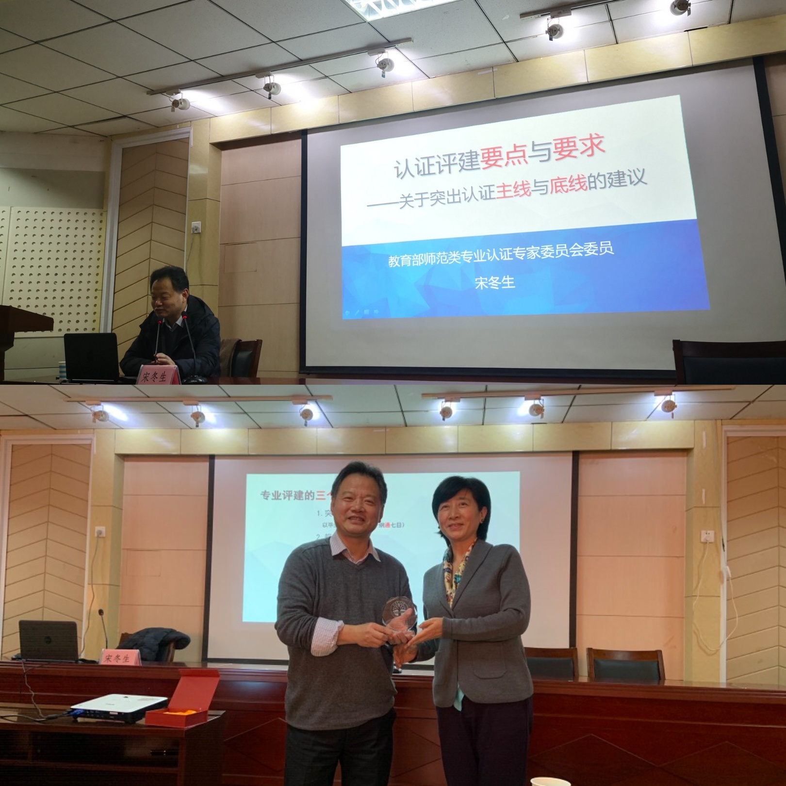 29日上午,教育部师范类专业认证专家委员会委员宋冬生教授在千佛山校区作了题为“师范专业认证的要点与要求”的报告。报告会由教师教学发展中心主任王新华教授主持,与会代表及校内各师范专业的教学院长、专业负责人及骨干教师认真听取了此次报告。宋教授结合国家政策及基础教育师资要求讲解了师范专业认证的内涵和目的,深入剖析了认证工作的要点和重点所在,敦促参加认证的专业要抓住主线和底线,克服难点,细致扎实地完成认证工作。宋教授的报告深入浅出,语言生动,观点独到,为师范类专业下一步的认证工作指明了方向。