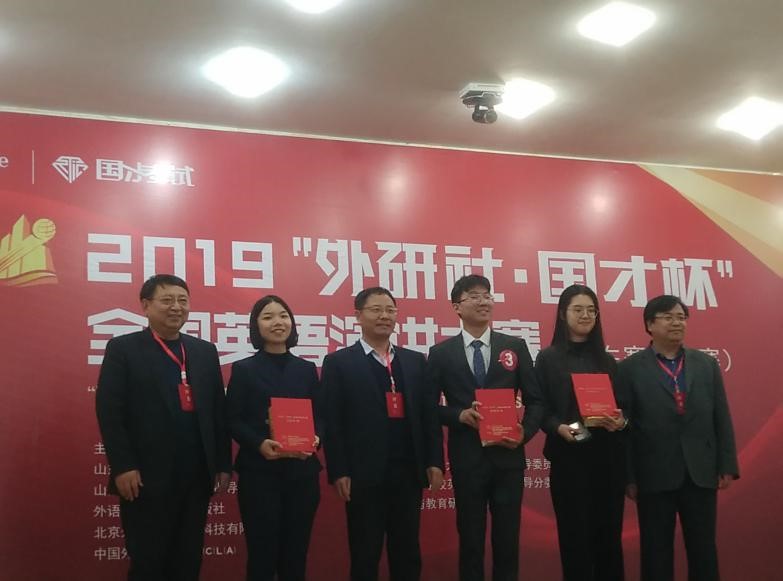 “外研社•国才杯”全国英语大赛是全国外语界规模最大、影响最广、最具权威的赛事之一,由外语教学与研究出版社主办,教育部高等学校大学英语教学指导委员会和教育部高等学校英语教学指导分委员会合办,根据山东省教育厅关于山东赛区的工作部署,外国语学院在教务处指导下承办了校内演讲比赛、阅读比赛及写作比赛的组织活动。经过初赛、复赛层层选拔,三位获奖选手王臻、邱吉尔、王悦代表我校参加了山东省复赛。