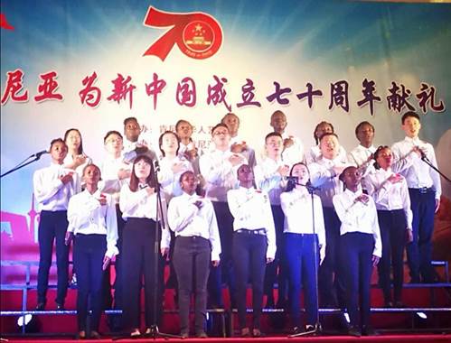 在此次歌唱比赛中,中国驻肯尼亚大使馆的外交官们在吴鹏大使的带领下献唱《我和我的祖国》,除此之外,其他队伍还演唱了激昂慷慨的《保卫黄河》,深情动人的《我和我的祖国》和《我爱你中国》等歌曲。肯雅塔大学孔子学院师生也受邀参加此次比赛,演唱《大中国》这首歌为新中国成立七十周年献礼,师生们优美的歌声和动人的舞姿引来了现场阵阵惊叹之声。