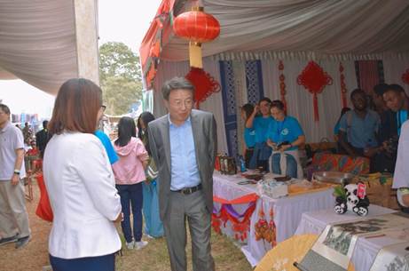 图三 中国驻肯大使馆吴鹏大使参观孔院展台