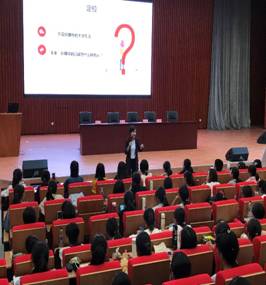 外语教学与研究出版社国才学院资深人才规划师陈曦女士为到场的同学们带来了《谈理想,看行动,直通精彩未来》的专题讲座。陈老师幽默诙谐的语言,生动丰富的案例,深入浅出的讲解使在场的同学们更直观的了解了未来职场需要什么样的人才,如何做时代发展所需要的国际化人才,如何在职场中更好的展现自我,实现人生价值等,整个讲座学生互动活跃,反响强烈。最后,济南学而思网校校园招聘人力资源部李佳伟先生作为企业代表向同学们介绍了作为用人单位更希望获得怎样的国际化人才,从而推动企业发展,并实现个人在职场中的飞跃。