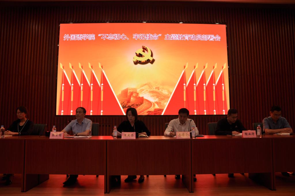 院党委书记岳希亮传达学校“不忘初心、牢记使命”主题教育工作会议主要精神,代表学院党委结合外国语学院实际作了工作部署和要求。一、要深刻认识主题教育的重大意义,增强开展主题教育的政治自觉;二、要在狠抓落实上下功夫,切实让这次主题教育取得实效;三、要创新方式方法,做实基层党支部学习教育和检视整改;四、要坚持围绕中心、服务大局,认真做好结合的文章;五、要强化责任担当,坚决保证主题教育有序高效开展。岳希亮同志提出,我们全院党员干部要认真学习贯彻学校党委“不忘初心、牢记使命”主题教育工作会议精神和校党委书记商志晓同志在主题教育工作会议上的讲话,认认真真、扎扎实实地把这次主题教育抓细抓深、抓实抓好、抓出成效。