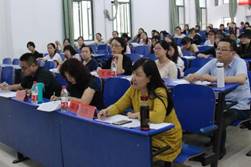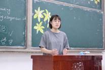 比赛邀请了山东省远程研修专家组核心成员刘珉老师、国家社科基金重大委托项目济南市初中协同创新课题负责人吴雨宁老师、全国创新英语大赛及IAP中小学综合竞赛金牌指导教师王春强老师以及本校英语专业的赵笑飞、王锦、刘震、孙炬共7位老师担任评委,可谓阵容强大。7位来自英语学科2016级的参赛选手在经历了一系列培养和逐轮选拔后最终获得初赛资格,并以现场抽题授课和答辩的形式再次进行角逐。比赛严格按照省赛流程,要求选手在抽题后的一个半小时内完成教学设计,接着进行十分钟无PPT、无辅助教具、只用黑板和粉笔的现场授课,然后针对评委的提问进行现场答辩。这无疑是对选手综合素质、师范能力、以及临场应变能力的“硬”考验。