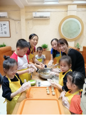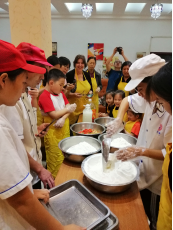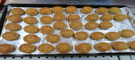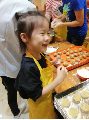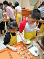 活动伊始,学院邀请了学校餐厅糕点师来为大家做指导,糕点师耐心细致地讲解广式月饼的传统技艺和制作方法,并现场进行了教学与互动。大家认真倾听,悉心领会,跃跃欲试,兴致盎然的投入到月饼制作活动中。大家纷纷拿起手套、模具、面粉、馅料等制作物品齐上阵,有的搓面团,有的搓馅料,有的压模具,分工明确,有条不紊地进行各种制作程序,在制作过程中,大家相互交流各自制作方法和技巧,别出心裁地按照工艺制作自己满意的月饼,同时以美食为话题,聊起生活的点滴,交流着学校与学院的工作,分享着活动感受。欢声笑语中小朋友们更是热情高涨,帮着家长和面、包陷,小脸上沾满了面粉,与家长们一同分享劳动的喜悦和节日的欢乐。大家一同把亲手制作的月饼送入烤箱烤制,在满满的盼望与期待中,热腾腾的月饼出炉,伴随着月饼香气,大家共同品尝着自己的劳动成果,文明和谐、欢快温馨的节日气氛达到了高潮。