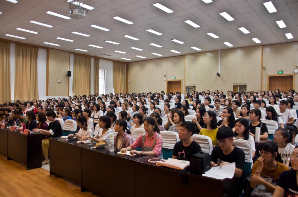 随后,由王卓为新生上了“开学第一课”。王卓首先表达了对新生的祝贺与骄傲。立足于大数据介绍了今年的生源组成,体现了学院良好的社会声誉与办学口碑。紧接着对学院整体做出了详细介绍。悠久的发展历史、良好的学术传统、深厚的文化积淀以及丰富的教学资源和良好的国际交流工作共同组成了外国语学院独特的优势,吸引了广大学子。之后,立足于时代要求与国家战略,王卓以宏大的格局与独特的视角阐释了外语学科的发展方向。她指出,随着新时代的到来,外语专业进入新的高潮,又面临新的挑战。根据习近平总书记的“大国发展战略”要求,面临当前科技飞速发展的挑战,国家和时代需要高层次、高水平的外语人才,而外语本身已经从工具性专业转变为人文性专业。在曾经与当下的外语技能要求对比中,外语人才需掌握的能力发生了极大的改变,除基本的要求外,语言美感,跨文化能力,自我可持续发展能力已成为对新时代外语学习者的新要求。她特别指出,自我可持续发展能力是指“独立的人格;高尚的情操;正确的政治观点;良好的自我学习和提升能力”。而专业内涵也已经悄然发生改变:语言学习已不再局限于语言本身,更多的是通过语言学习其他文化内容。以此为出发点,她对专业学习方法做了精辟的论述。她指出,外语学习阅读不仅仅局限于本专业的教材,更应当大量阅读语言本身的文学、文化著作与研究性文献,增强自身思考能力,以提升批判思维,掌握新时代要求的综合素质。最后,王卓再次表达了对广大新生的深切祝福。
