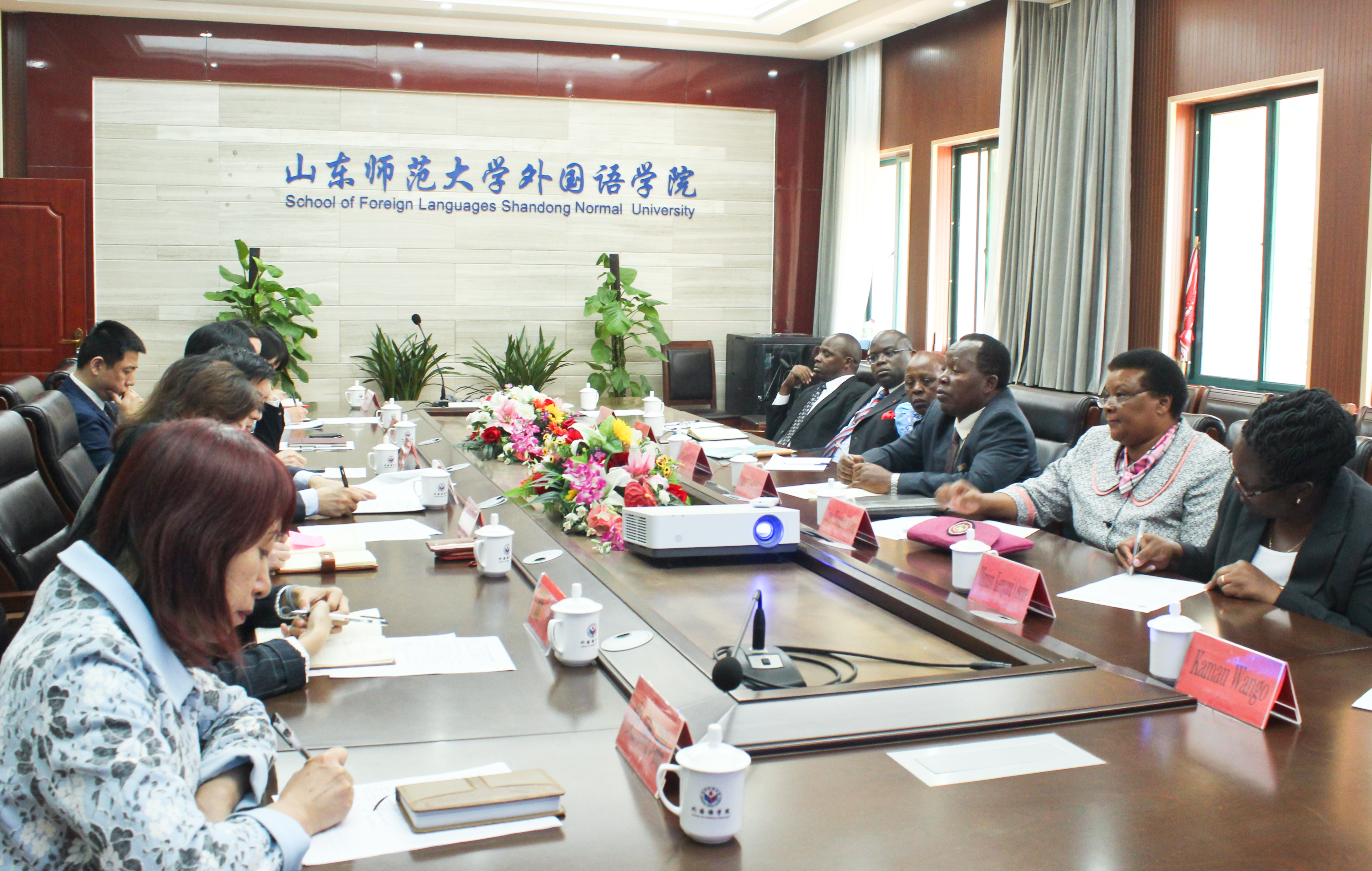 国际交流与合作处副处长李杰,外国语学院党委书记岳希亮,党委副书记金鹏,副院长岑玮,研究生办公室秘书史闽瑞、董欣,国际交流秘书刘铭,国际交流与合作处科员江溪在会议室接待了肯雅塔大学孔子学院教育者访华团,双方就院校间师生交换合作项目与英语专业研究生志愿者派遣等事宜展开交流。