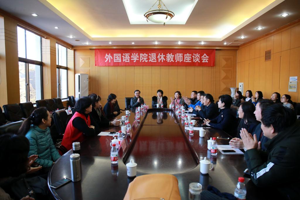 2月2日上午,外国语学院在千佛山校区文化楼三层会议室隆重举行退休教职工荣退座谈会。学校党委常委、纪委书记姚东方,学院党政领导班子成员、工会委员、退休教职工、部分系部负责人和中青年教师代表、学生代表等30余人欢聚一堂,抚今追昔,抒发对教育事业的深厚感情和对学校的感激与眷恋。座谈会由学院工会主席侯青龙主持。