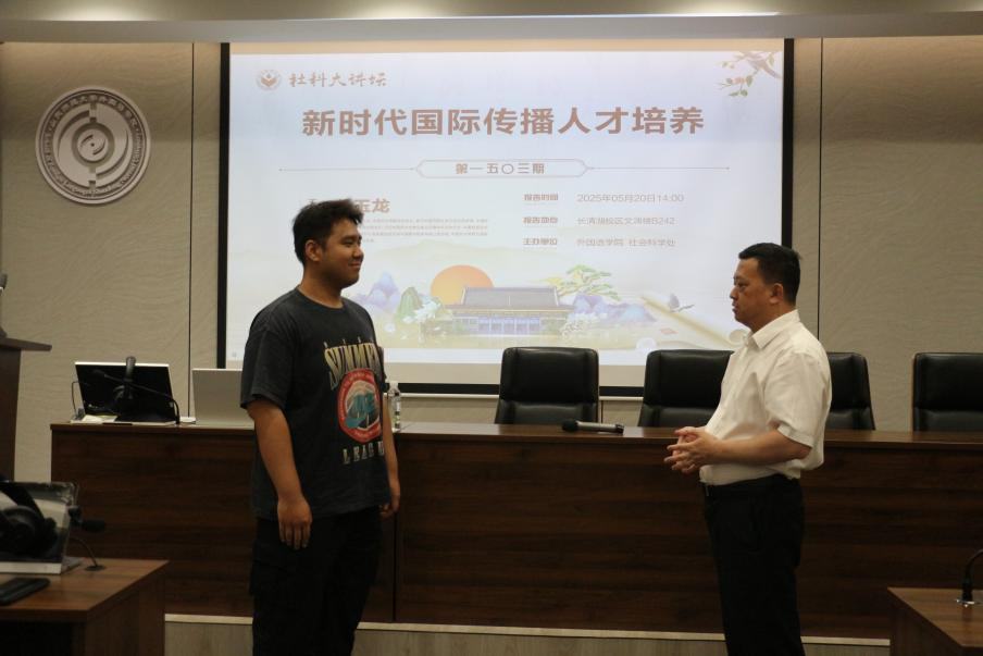 此次讲座交流以“学生总结与互动答疑”收尾,黄院长强调,国际传播人才需平衡“内知国情”并“外晓世界”,避免“重外轻内”或“自说自话”;讲好中国故事需“用事实说话、让数据发声、借共情传递”,让国际社会“看见中国发展的温度与逻辑”。最后,黄院长向新时代青年提出了展望,鼓励学生以“功成不必在我,功成必定有我”的担当,在未来的国际交往中,成为“中国可信形象”的建设者与传播者。