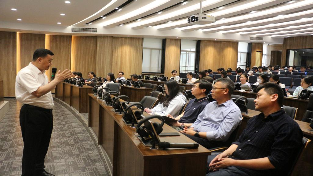 2025年5月20日下午,外国语学院社科大讲坛第1503期“新时代国际传播人才培养”于山东师范大学长清湖校区文渊楼B区242成功举办。本次讲座邀请了中国翻译协会副会长、中国外文局翻译院院长黄玉龙作为主讲嘉宾,由外国语学院院长王卓主持,外国语学院教授徐彬总结。学院教师、研究生100余人聆听了此次讲座。