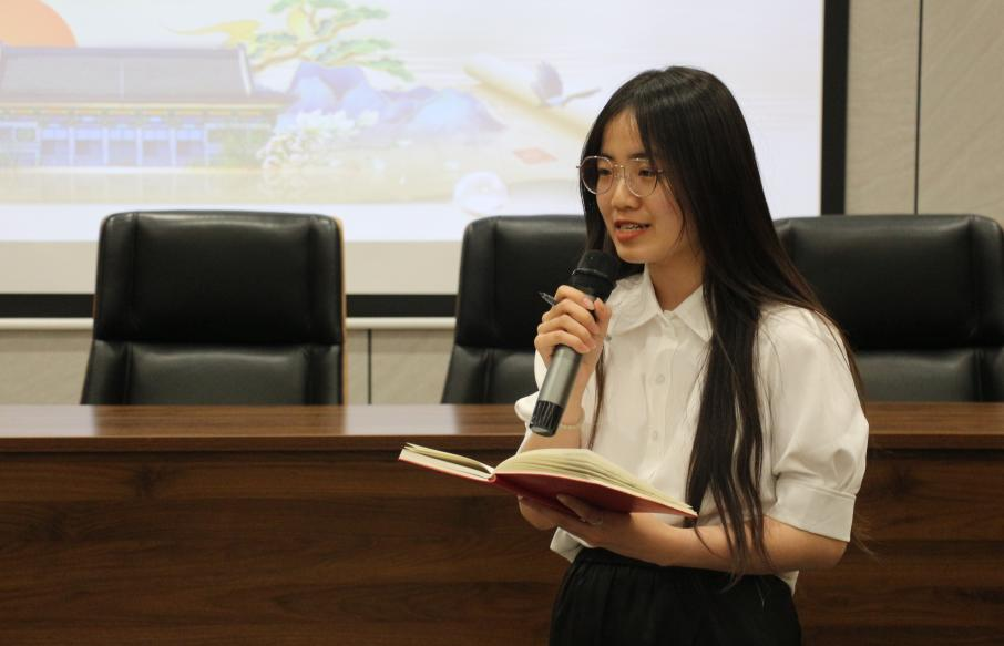 最后,外国语学院徐彬教授用“Passion”“Vision”“Inspiration”三个英文词,对此次精彩的讲座交流进行了总结。首先,徐老师指出,黄院长全程无休、无稿、无幻灯片,以自由交流的形式激发了学生们的互动热情与家国情怀。再次,此次讲座拓宽了学生们的视野,引发了师生对于国际传播人才培养的思考。最后,徐老师对学生们提出展望,希望同学们能在此次讲座中获得启发与灵感,为新时代的国际传播做出自己的贡献。