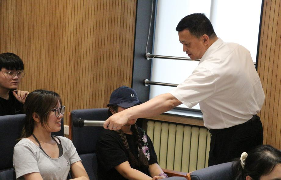 接着,黄院长引导同学们共同讨论了对当今中国国情的认知,理解“中国目前是唯一能与美国‘掰腕子’的国家,但需避免盲目自大”,并通过情景表演,还原了外交场合的话语逻辑,凸显“内知国情是国际传播的底气”。