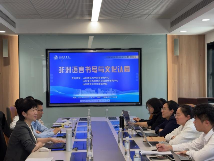 4月28日,“非洲语言书写与文化认同”学术论坛在文渊楼A区413会议室成功举办。此次论坛是外国语学院常青学术论坛学术提升系列活动之一,由山东师范大学东非研究中心、山东省与东非地区交流合作研究中心及外国语学院联合承办。山东师范大学外国语学院院长、山东省与东非地区交流合作研究中心主任王卓教授、外国语学院副院长翟乃海教授出席活动并担任点评人,山东师范大学东非研究中心主任李静副教授担任主持人。翟乃海教授、毕晓毅副教授、姜毓星博士、博士研究生郭丹阳、硕士研究生刘琦先后进行了主题汇报。李方木、徐倩倩等教师及英语语言文学方向研究生参加了本次学术论坛活动。