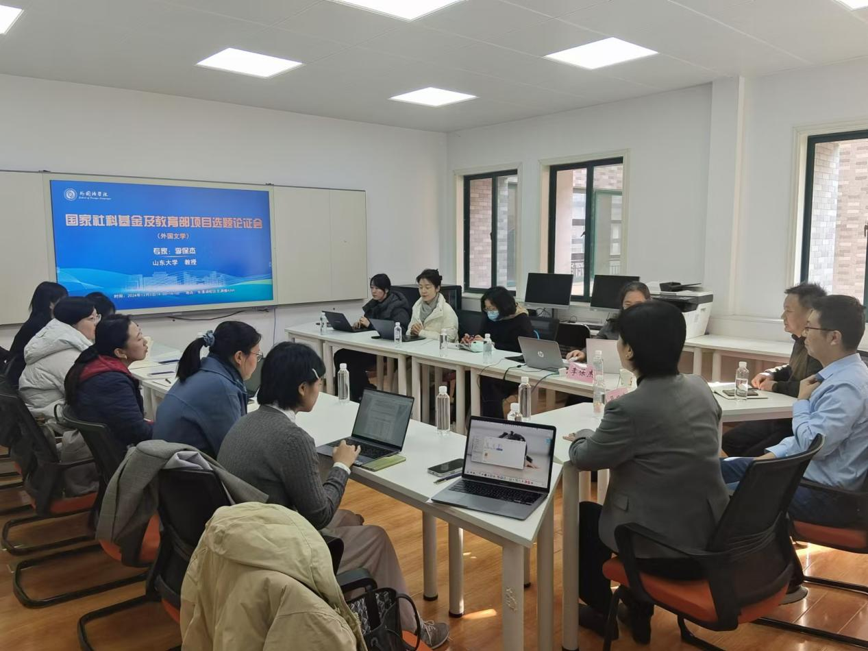 2024年12 月 5 日下午,外国语学院在文渊楼A349和A321会议室成功举办2025年国家社科基金和教育部人文社科基金项目申报选题论证会。山东大学李保杰教授、张延飞教授分别对外国文学、语言学方向的选题进行了论证。社科处刘兴波副处长对论证工作做了具体指导。学院院长王卓教授、副院长翟乃海教授、张媛教授和二十余位教师参与活动。