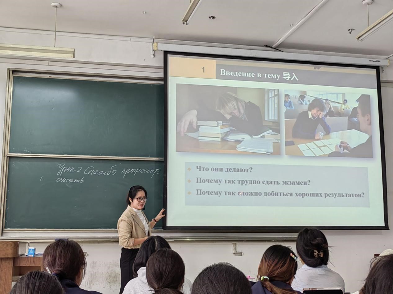 2024年10月16日下午,外国语学院在长清湖校区文渊楼B区328教室举办了第五届“启航1+1”公开课活动。此次活动由韩悦老师担任主讲教师。公开课结束以后,学院教师们随即进行了教学研讨活动。校级督导员、外国语学院王金娥教授,院级督导员蒋斌副教授,俄语副系主任王世臣老师,俄语系教师及学院部分青年教师参加了此次活动。