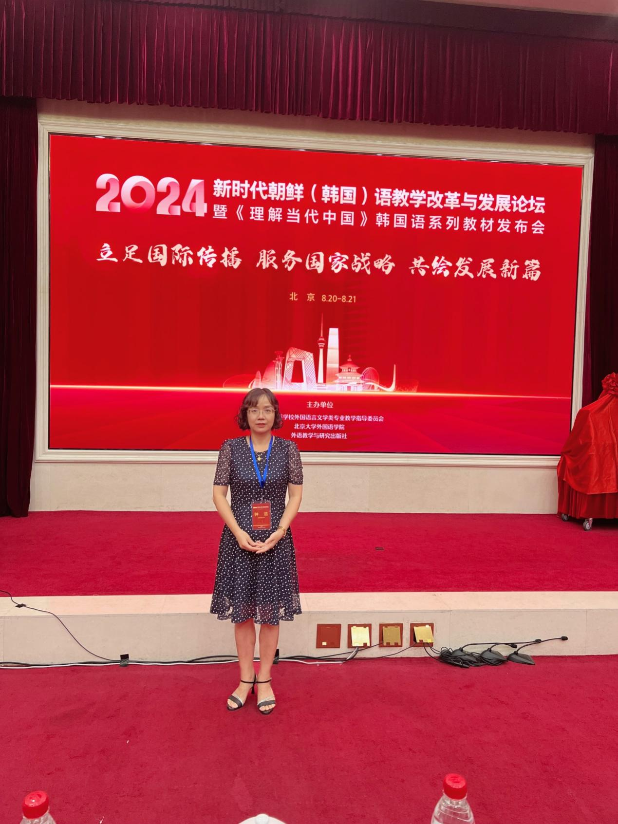 8月20日至21日,2024新时代朝鲜(韩国)语教学改革与发展论坛暨《理解当代中国》韩国语系列教材发布会在北京中央社会主义学院成功举办。本届论坛以“立足国际传播、服务国家战略、共绘发展新篇”为主题,由教育部高等学校外国语言文学类专业教学指导委员会、北京大学外国语学院、外语教学与研究出版社联合主办。会议共有全国的七十余位朝鲜(韩国)语教育专家、学者、一线教师参加,我院朝鲜语专业钟洁老师受邀参加本次会议,并于9月4日与我院朝鲜语专业老师们就会议的主要内容进行座谈。