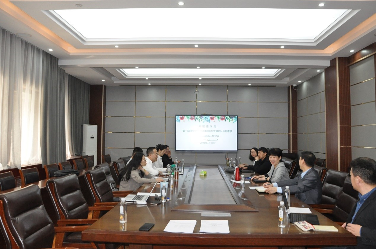 4月15日下午,外国语学院进行了第一届“师生学术共同体创新与发展”团队中期考核,并完成了第二届遴选工作,会议在长清湖校区文渊楼A区313会议室举行。学院党委书记岳希亮、院长王卓、副院长杨建新;学术委员会成员胡艳玲教授、徐彬教授、杨金蕊教授、翟乃海教授;第一届外国语学院“师生学术共同体创新与发展团队”六名负责人参加了会议,王卓院长主持会议。