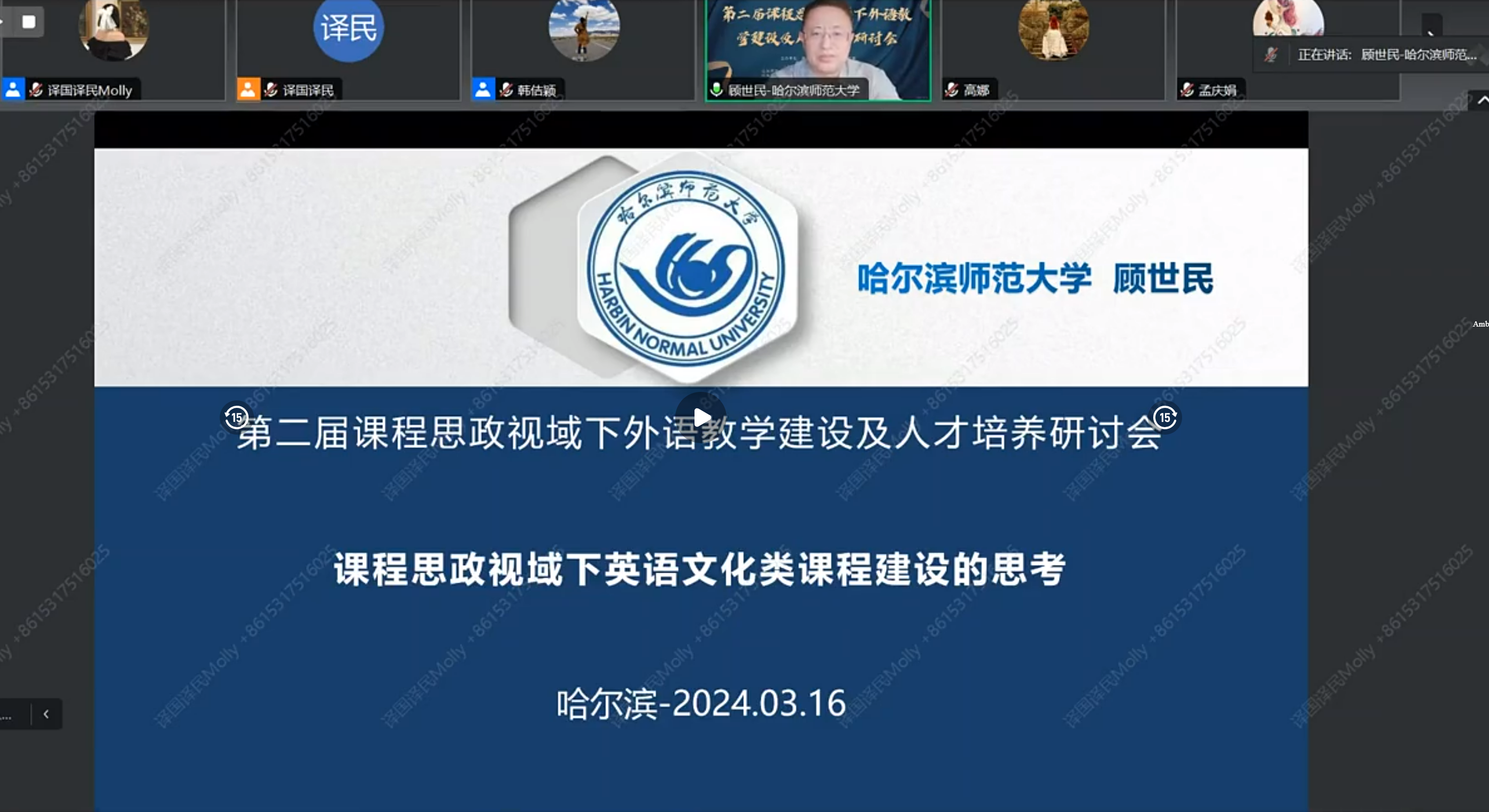 2024年3月17日,为期两天的山东师范大学外国语学院教师发展分中心“语师同行”第3期暨第二届课程思政视域下外语教学建设及人才培养研讨会成功落下帷幕。本次会议由华中师范大学外国语学院、山东师范大学外国语学院大中小一体化多语种课程思政工作室及“以语载道”大学英语课程思政工作室、上海交通大学外国语学院外语课程思政中心联合主办,译国译民集团承办,以融媒体线上直播的方式,通过主旨报告、课程思政示范、案例展示的形式,从教学理念、教学目标、教学内容、教学方式和教学评价等方面思考和探索在课程思政视域下的外语课程建设及人才培养方案,两天的时间内,逾4000人次聆听了线上讲座并积极参与互动,获得了与会老师及同学们的一致好评。