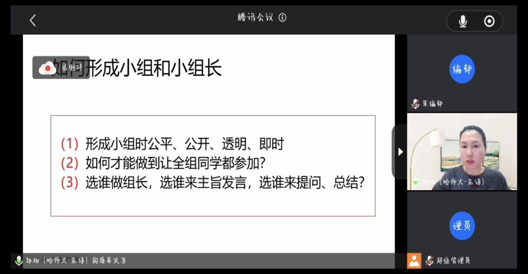 2023年11月8日19:00,山东师范大学外国语学院邀请哈尔滨师范大学郑杨教授于线上展开了一场题为“学生自主?还是教师主导?——关于线上线下混合式教学的思考”的一流课程专家辅导讲座。王卓院长以及部分骨干教师参加了本次讲座。讲座由副院长张媛教授主持。