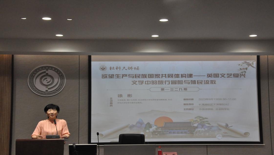 2023年9月13日上午,由山东师范大学外国语学院、社会科学处联合主办的第1329期社科大讲坛在文渊楼B区242教室成功举办。本次讲坛邀请东北师范大学徐彬教授为主讲嘉宾,作题为“欲望产生与民族国家共同体构建——英国文艺复兴文学中的旅行冒险与殖民流散”的学术讲座。讲座由王卓院长主持,出席此次论坛的有翟乃海教授以及全体研究生同学。
