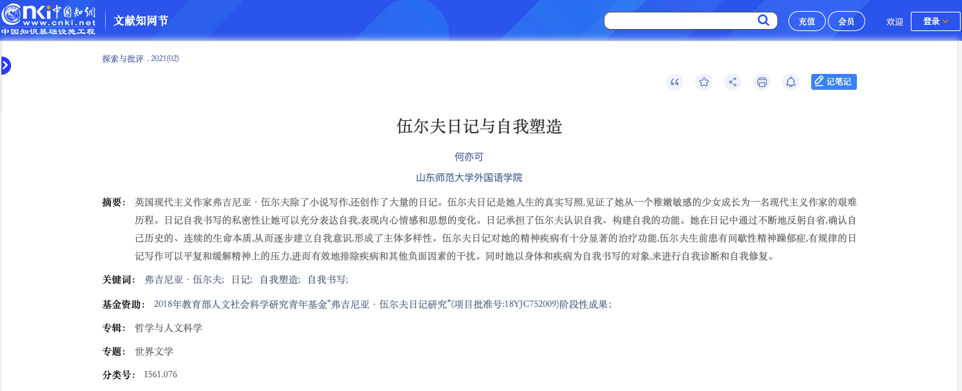 近期,我院教师何亦可博士的伍尔夫系列研究成果“伍尔夫日记与自我塑造”“论伍尔夫传记文学的嬗变”“文艺创作思想的基石:伍尔夫日记研究”“一个作家的自我书写:弗吉尼亚·伍尔夫日记研究”先后发表于《现代传记研究》等期刊上,并翻译了伍尔夫的代表作品《一间自己的房间》。何亦可博士在系列文章中肯定了伍尔夫日记和传记作品的文学价值和研究意义,认为日记是伍尔夫所有著作中篇幅最长、涵盖面最广的作品,并且她很早就将日记视为严肃文学,并用尽毕生来实践并改革这种文学形式。自我书写是对自我成长道路回顾的文本,作者将个人的感性体验投入对人性、历史与社会的理性观照之中,包括日记、自传和自传体小说等。伍尔夫日记不仅记录了个体生命的日常生活和内心情感,见证了她自我塑造和自我成长的整个历程,而且还是其社会文化、文艺思想与写作技巧的共同体。