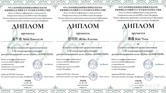 11月20日,第十一届“孔子学院杯”中俄歌曲大赛在圣彼得堡第32中学成功举办,代表我校参赛的俄语系学生2020级康晨、2019级任可欣和孟千会分获大赛一、二、三等奖。