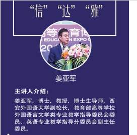 姜亚军,博士,教授,博士生导师,西安外国语大学副校长,教育部高等学校外国语言文学类专业教学指导委员会委员、英语专业教学指导分委员会副主任委员。长期从事于英语教学与研究工作,为教育部“英语专业综合改革试点”项目负责人,陕西省教学团队“英语写作系列课程”教学团队带头人,国家级精品资源共享课“英语写作”主要参与人。 姜亚军教授主要研究领域为语篇语言学、应用语言学、英语变体和翻译学研究,发表学术论文100余篇。出版专著、编著、教材、译著等25部。先后主持完成多项国家社科基金项目、教育部人文社科项目和陕西省社科基金项目。曾多次获陕西省优秀教学成果奖和陕西省哲学社会科学优秀成果奖。